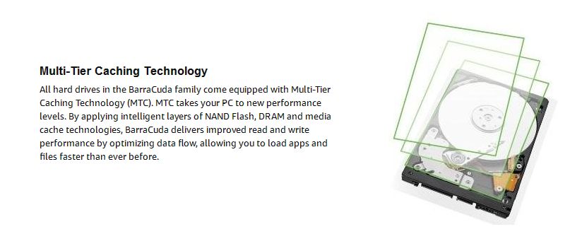 - Visit the official page of Seagate BarraCuda HDD Series and scroll down until you reach the “Multi-Tier Caching Technology” section. See what Seagate claims about it. (screenshot below)